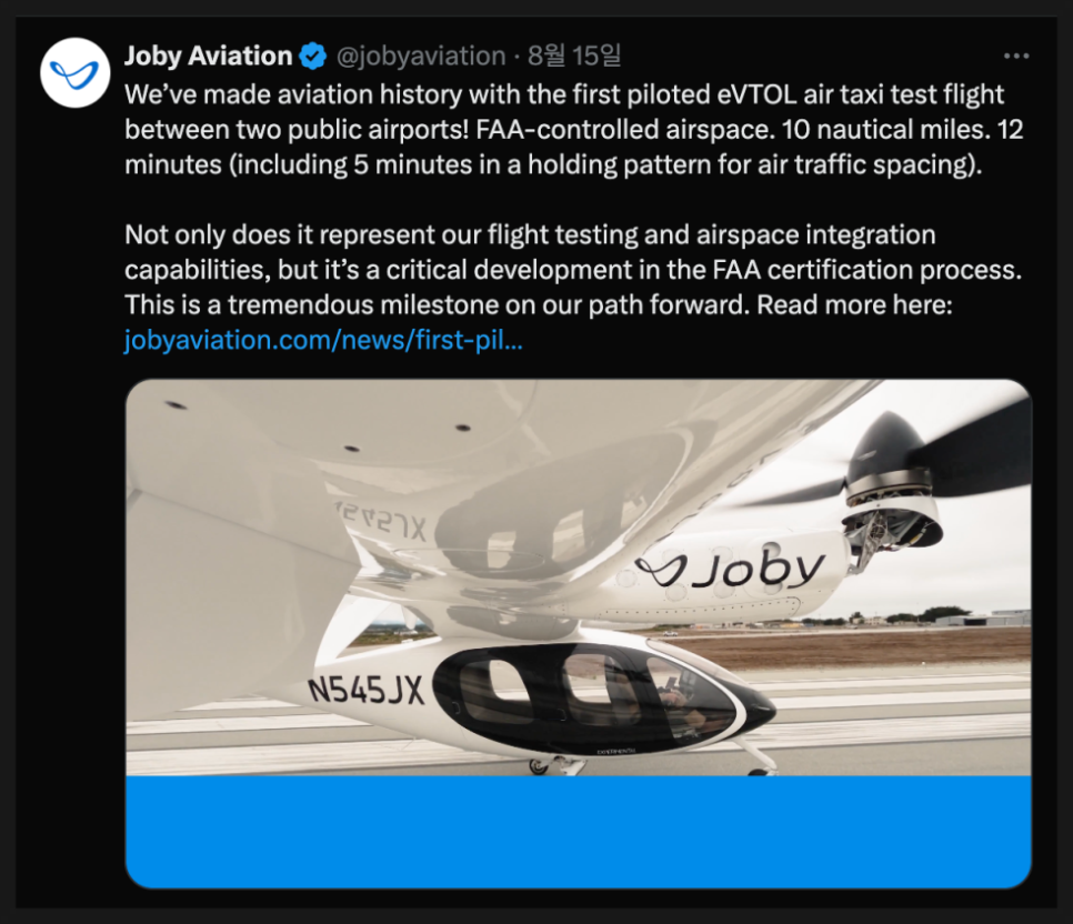 다만 시장은 성공했을 때의 보상도 그만큼 크다는 점에 주목하고 있습니다. 단순히 ‘비행기 회사’가 아니라, 새로운 교통 생태계를 선점할 수 있는 기업이 될 수 있기 때문이죠.