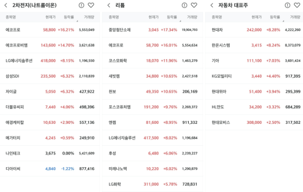 <2차전지 ESS 자동차 관련주 강세>
