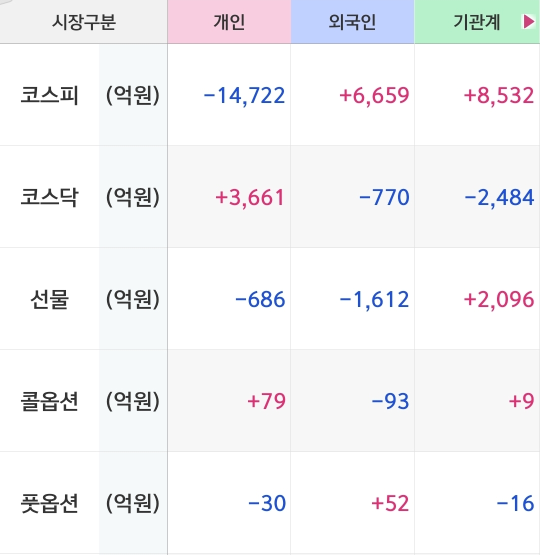 기관은 외인과 반대의 포지션입니다.