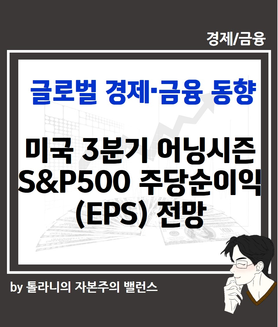이에 '미국 3분기 어닝시즌 S&P500 주당순이익(EPS) 전망, 빅테크 모멘텀 둔화, 26년 실적 가이던스 등 주요 이슈' 관련하여 국제금융센터 보고서를 통해 좀 더 자세히 알아보도록 하겠습니다.