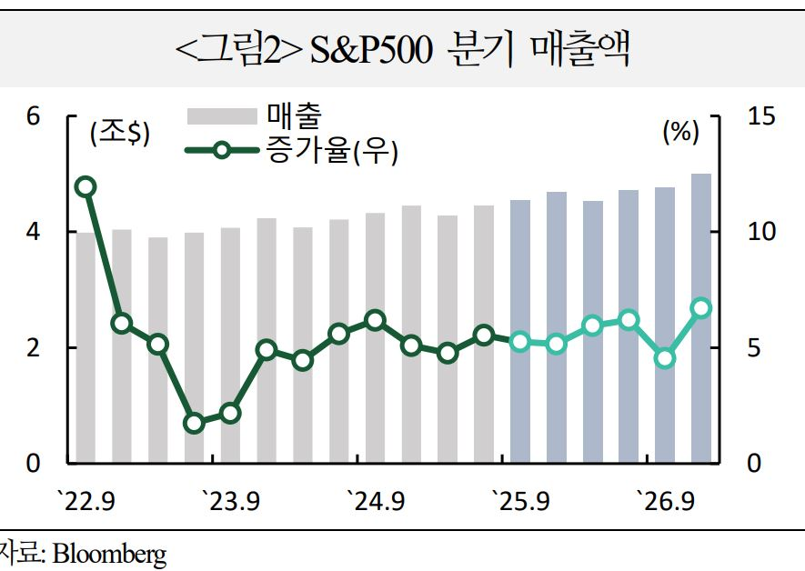 ● 기조효과 등으로 기업이익 증가세는 둔화될 수 있으나, AI 산업에 대한 우호적인 전망과 함께 모멘텀 둔화가 시장의 기대 범위 내에서 진행될 것으로 보여, 하방 압력은 제한적일 전망. 다만, AI Capex관련 가이던스에 주가 변동성이 확대될 소지