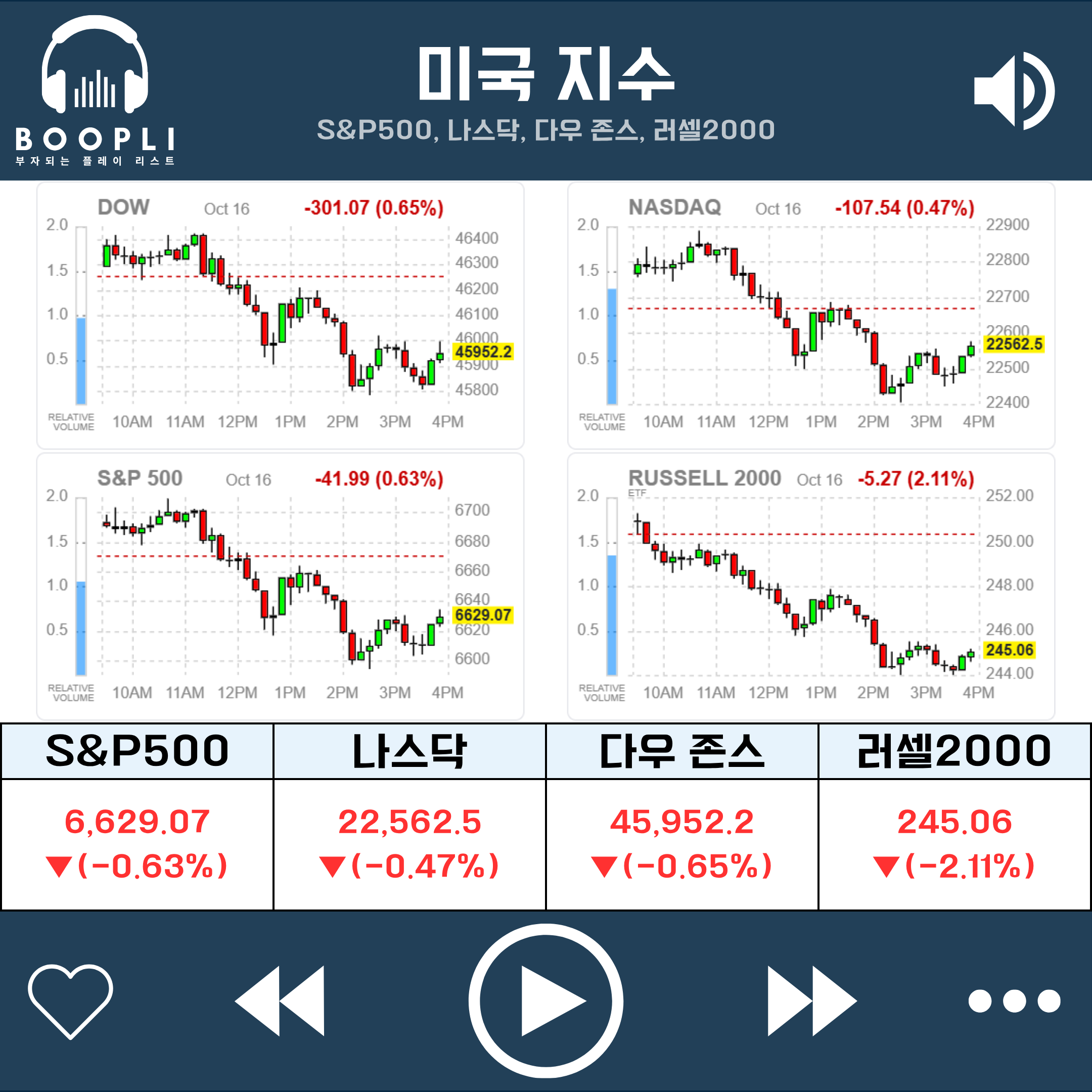 신용 리스크 확산과 유동성 경색 우려가 겹치자 위험자산 회피 매물이 쏟아졌고, 주요 은행 경영진들의 경기 둔화 및 시장 과열 경고 발언이 이어지면서 실적 기반 없이 급등했던 양자컴퓨터, 리튬, 원자력 등 고평가 중소형 테마주들이 10% 이상 폭락했고, 이에 따라 러셀2000 지수의 낙폭이 확대됐다.