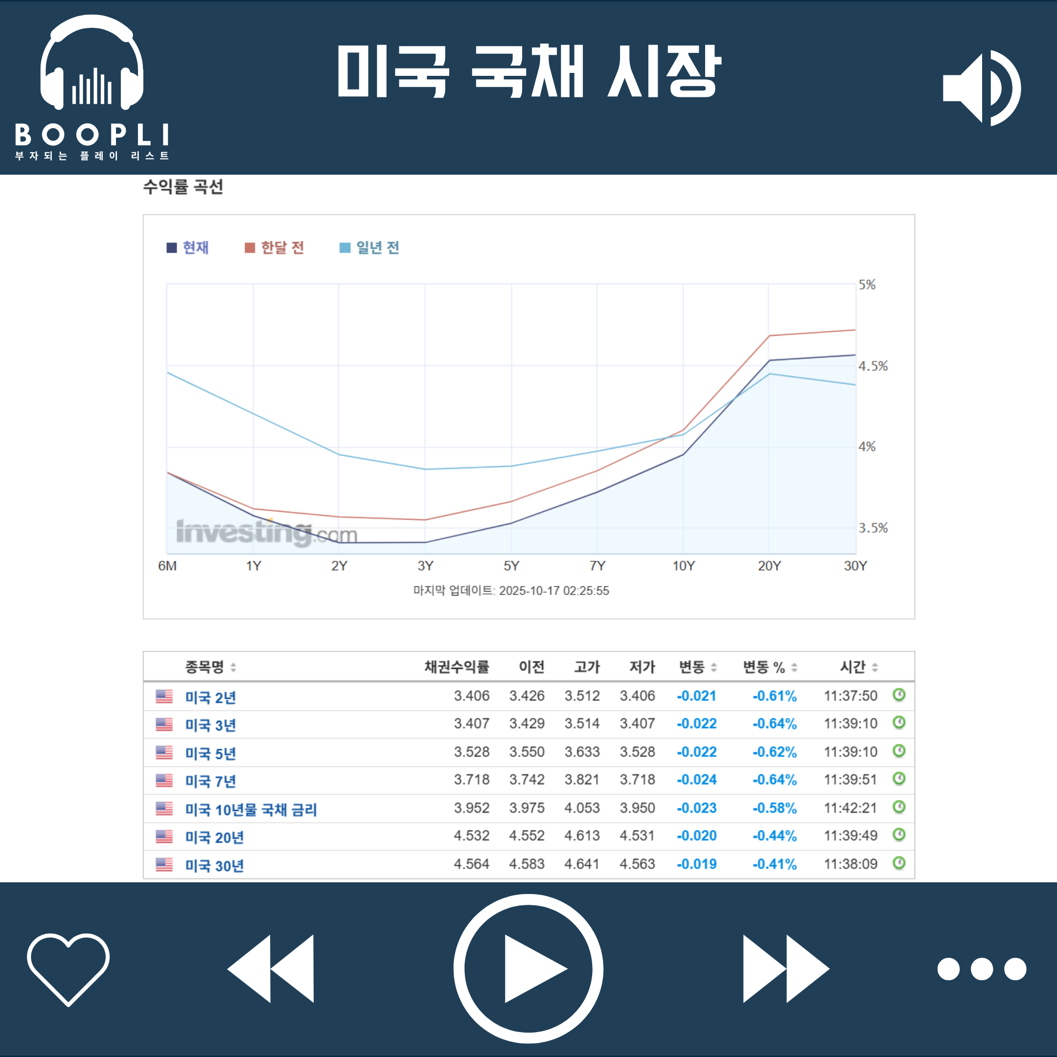 안전자산 선호 속에 미 10년물 국채금리는 하락했고, 금 가격은 온스당 4,300달러를 상회했으며, 변동성지수(VIX)는 22% 급등한 25.3을 기록