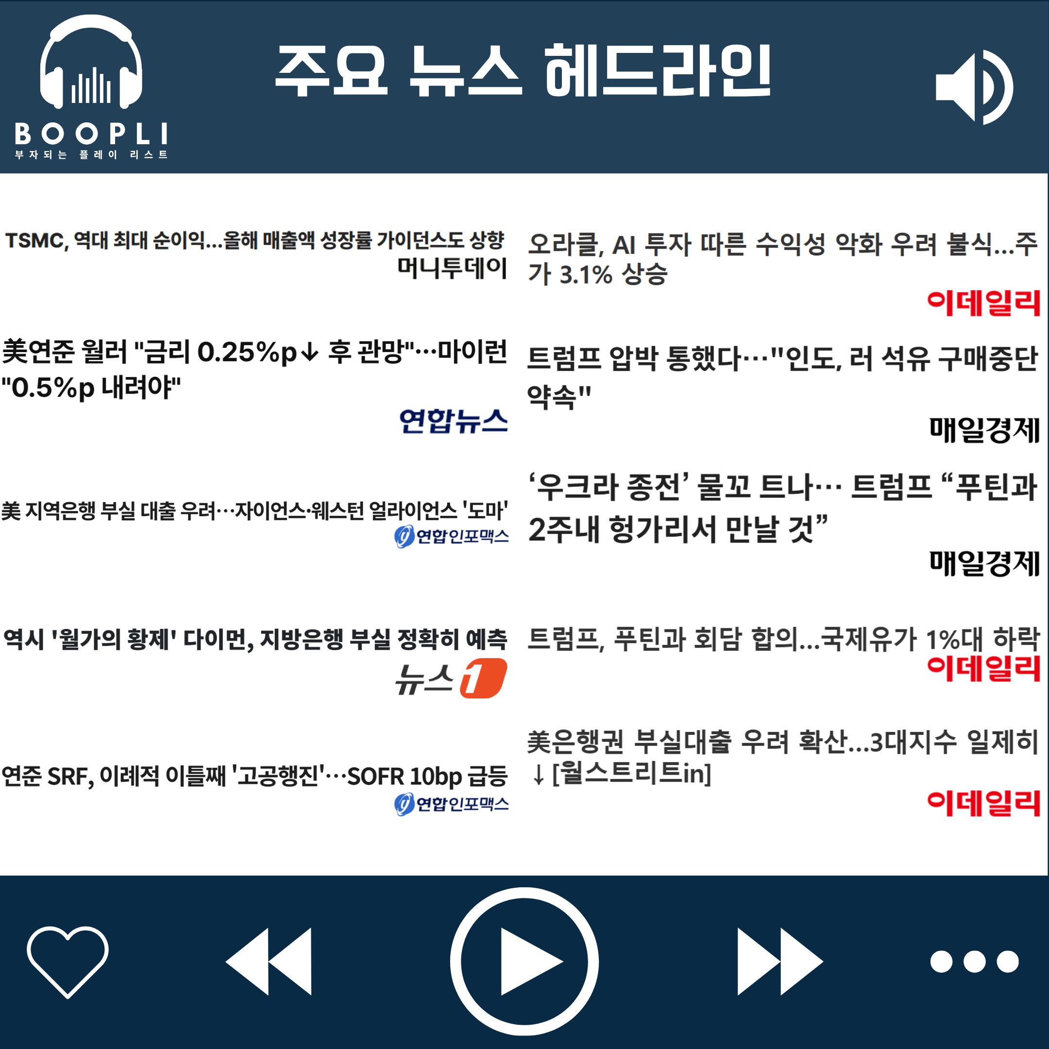 한편, 트럼프 대통령과 푸틴 대통령이 약 2시간의 전화 통화 끝에 부다페스트에서 정상회담을 열기로 합의했다는 지정학적 소식이 전해졌으나, 시장은 이미 지역은행발 신용 리스크에 집중하며 위험회피 심리가 지배적인 상황이었기에 해당 소식의 영향은 제한적