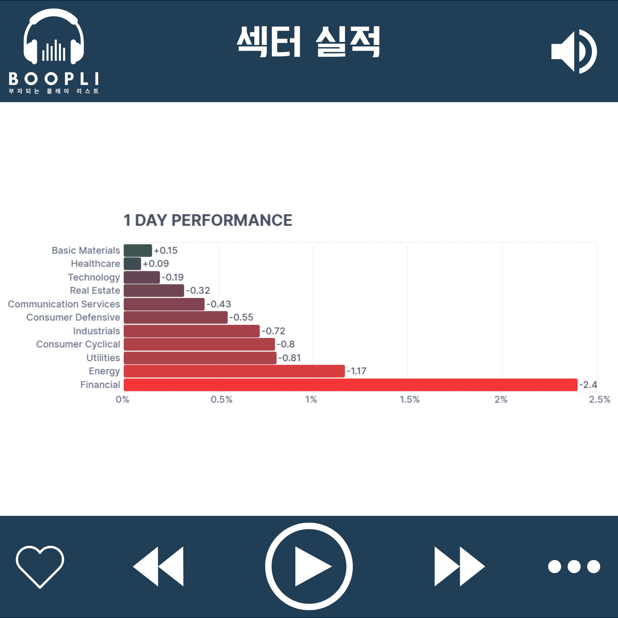 TSMC 호실적에도 불구하고 지역은행 발 신용 리스크 확산으로 금융 섹터가 하락을 주도, 이어서 에너지, 유틸리티, 소비 순환재, 산업재, 경기 방어주 순으로 약세
