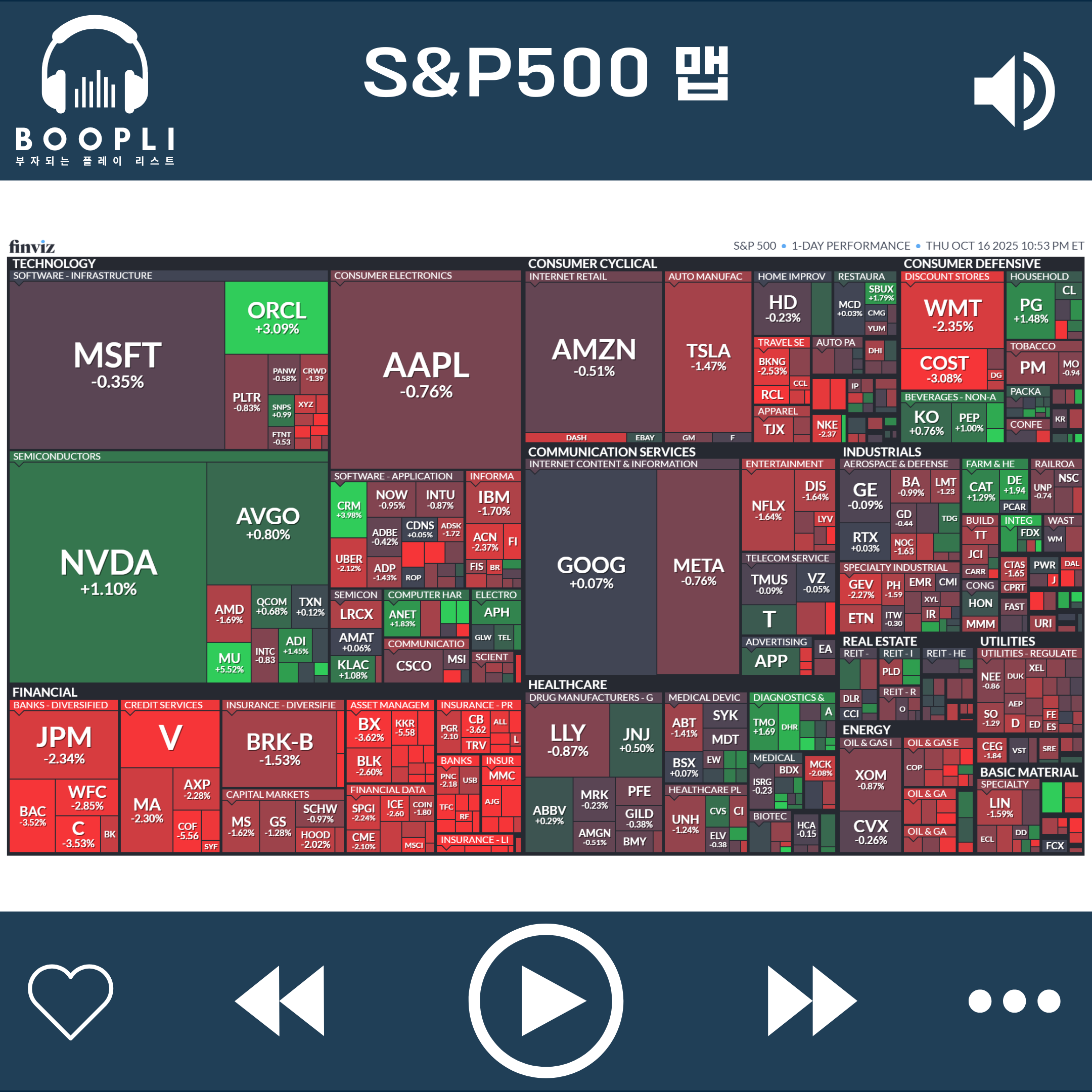 전반적으로 전일 증시는 TSMC 실적 호조에 반도체 및 AI 관련주가 강세를 유지했으나, 지역은행발 신용 리스크가 부각되며 주요 지수가 일제히 하락