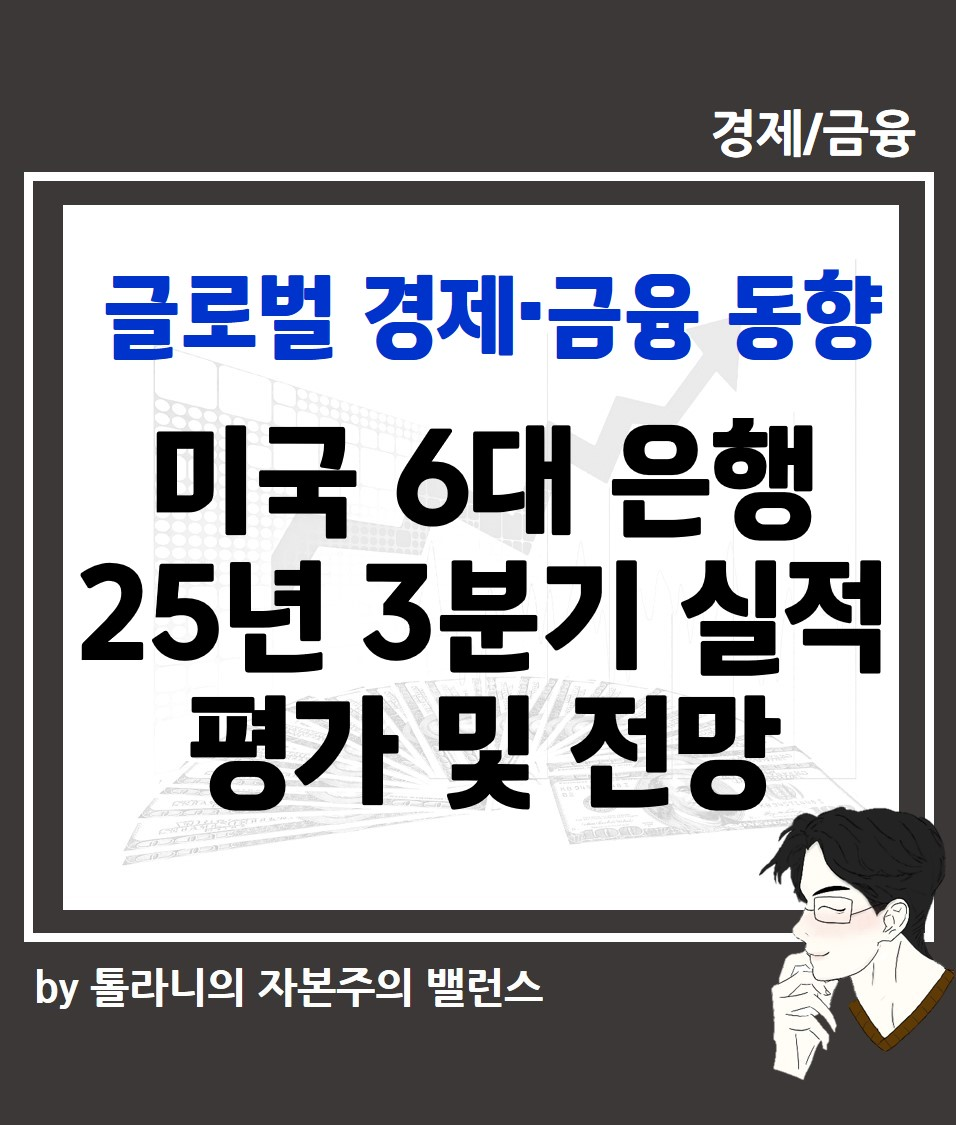 미국 대형은행의 25년 3분기 실적 발표를 하였는데요. 주요 6대 은행들의 실적이 시장 예상치를 큰 폭으로 상회하면서, 미국 경제가 전반적으로 양호한 것으로 시장에서 판단하고 있습니다.