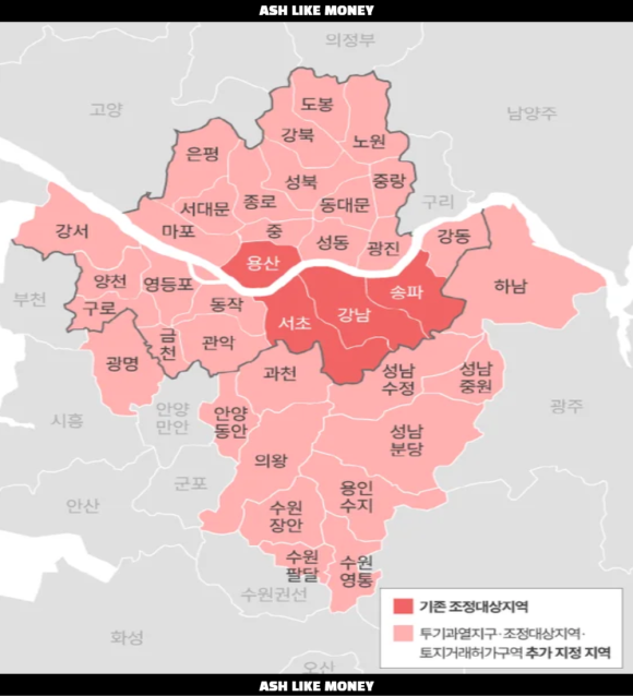 서울 내 전지역을 투기과열지구로 묶어버림으로써 서울은 이제 왠만한 현금이 없다면 들어올 수 없게 된다. 투기과열지구에선 ⓐ LTV가 70%에서 40%까지 감소(유주택자는 0%), ⓑ DTI 또한 40%로 축소, ⓒ 전세대출 1주택자 대출한도 2억원, 전세대출 보증비율 80%, 조건부 전세대출로 갭투자 금지, ⓓ 수도권 3년, 지방 1년 전매제한, ⓔ 다주택자 취득세 중과, 양도세 중과 및 장기보유특별공제 전면 배제, 양도세 1세대 1주택 비과세 요건강화, ⓕ 자금조달계획서 및 입주계획 신고의무, ⓖ 재건축 조합원당 주택 공급수 1주택으로 제한, ⓗ 1억원 초과 신용대출을 보유한 차주에 대해 대출실행일로부터 1년간 규제지역 내 주택구입 제한의 규제가 붙는다.