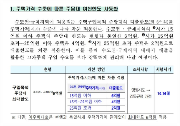 주담대 조건을 기존 수도권 6억 한도에서 4억까지 줄여버리는 엄청나게 강도 높은 규제도 발표했다. 정확히는 15억 이하 아파트는 규제지역 내 대출 6억 한도, 15억~25억 내는 대출 4억, 25억원 초과는 대출 2억까지 줄인다. 그야말로 매물을 잠기게 만드는 규제정책으로 왠만한 급매가 아닌 이상 절대 매물이 나올 수 없게 만드는 정책이다. 하지만 보유세는 건드리지 않았는데, 이는 지방선거를 준비하기 위함으로 보인다. 괜히 보유세를 건드렸다가 선거에서 참패를 맞는 것을 알기 때문이다.