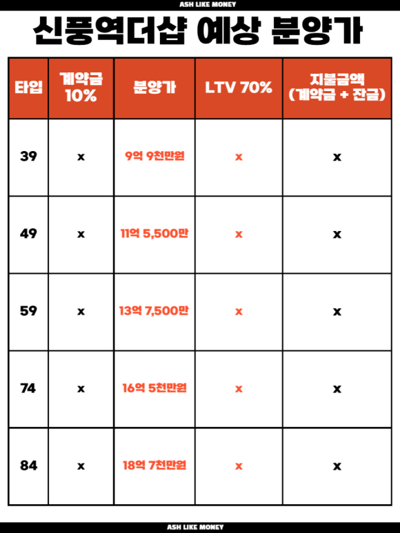 예상되는 일반분양가는 평당 5,500만원이다. 25평은 13억 7,500만원이며 34평은 18억 7천만원 수준이다. 정확한 분양가는 향후 분양 전에 업데이트하겠습니다.