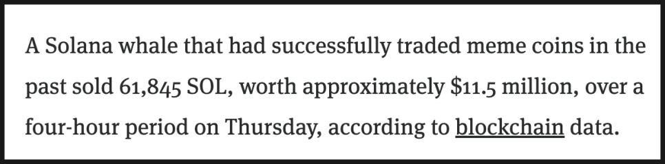 한 솔라나 코인 고래 투자자는 약 1,150만 달러를 몇 시간 만에 매도했고,