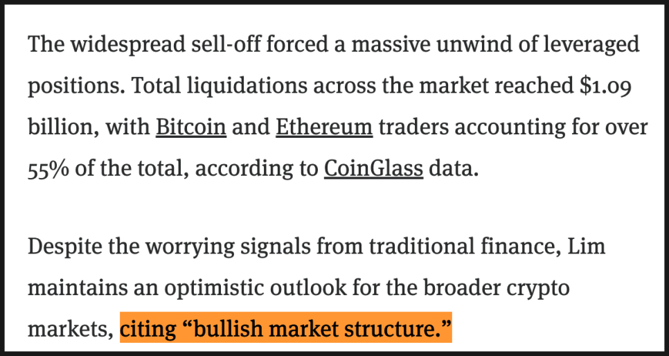 칼라단(Caladan)의 리서치 총괄 데릭 림(Derek Lim)은 “시장 구조 자체는 여전히 상승 추세를 유지하고 있다”고 평가했습니다. ETF 자금이 견고하고 기관 자금의 이탈이 제한적이라는 점에서 이번 하락이 구조적인 약세장이 아니라 과도한 레버리지 청산으로 인한 ‘셰이크아웃(shakeout)’이라는 분석도 힘을 얻고 있습니다.