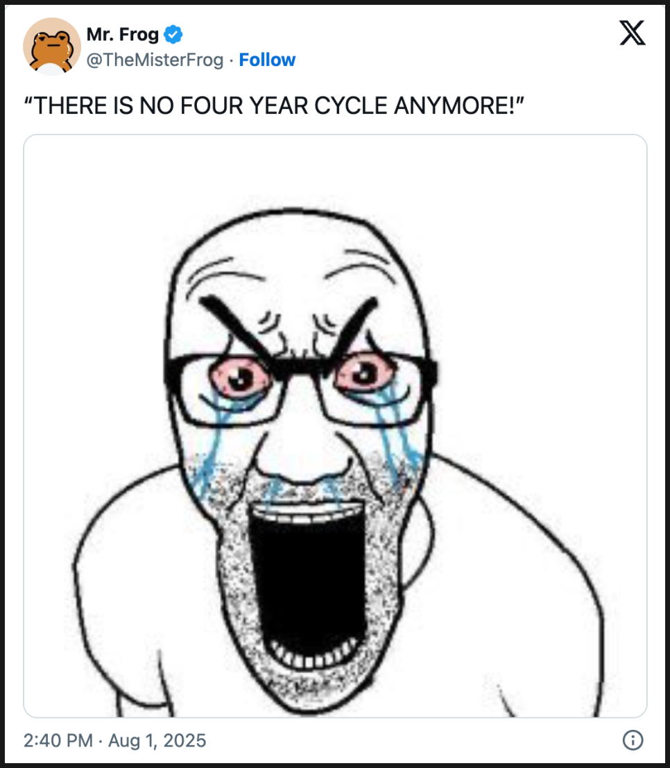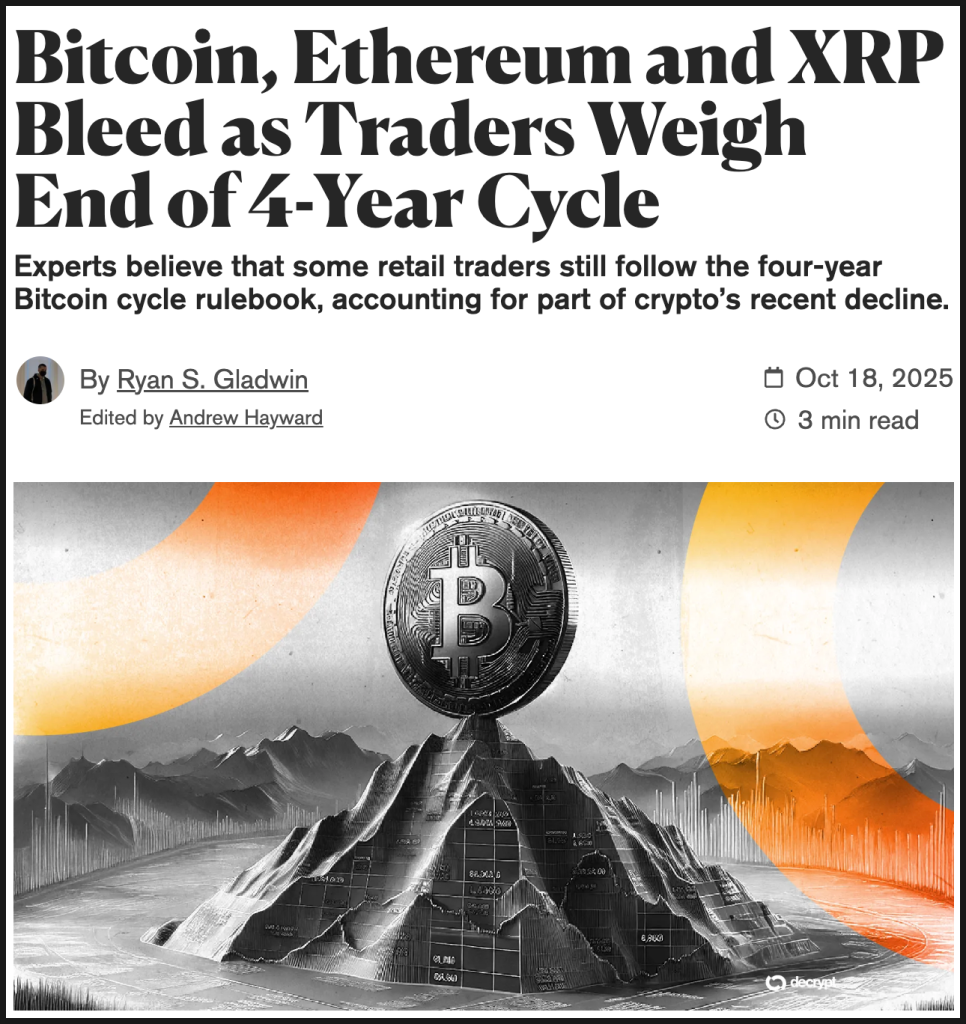 하지만 시장은 이미 크게 변했습니다. ETF와 파생상품, 기관 자금 유입으로 예전처럼 단순한 사이클만으로 가격이 움직이지는 않습니다. 그럼에도 일부 투자자들은 여전히 과거의 공식을 따르고 있고, 이들의 기계적인 매도가 하락을 부추기는 상황이 이어지고 있습니다.