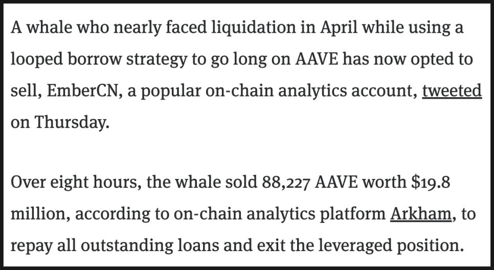 한 아베(AAVE) 코인 고래 투자자는 1,980만 달러 규모의 포지션을 정리했습니다.