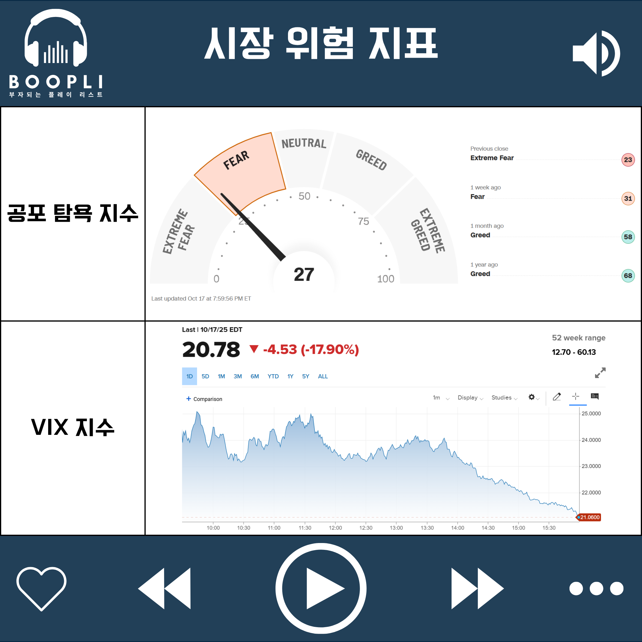 시장 변동성을 나타내는 VIX 지수는 급락하면서 변동성 완화