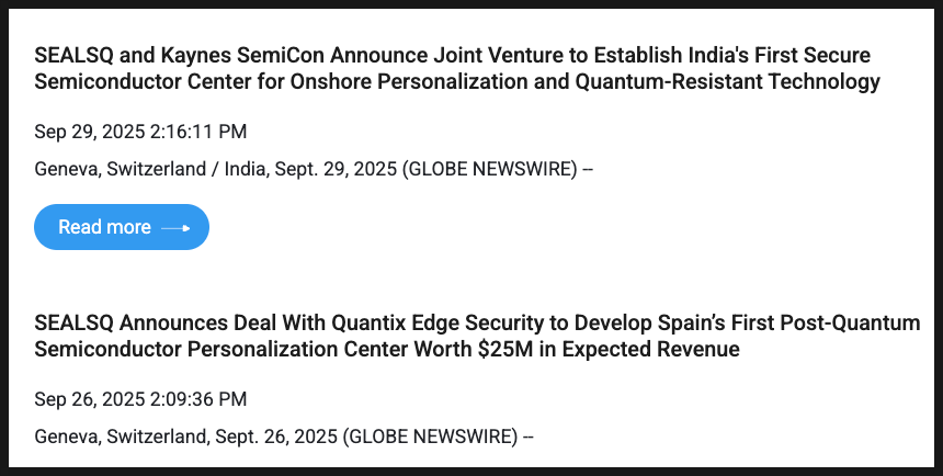 또 9월 29일에는 Kaynes SemiCon과의 합작으로 인도에 첫 양자 보안 반도체 생산 거점을 설립한다고 발표했고, 9월 26일에는 Quantix Edge Security와 스페인에 2,500만 달러 규모의 양자 보안 반도체 센터 설립 계약을 체결했습니다.
