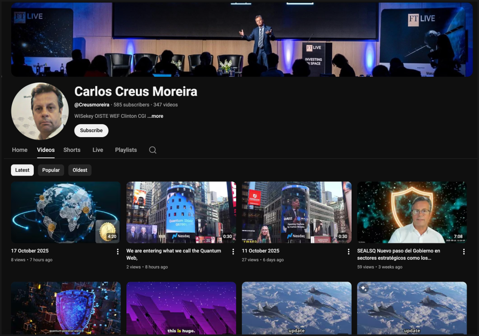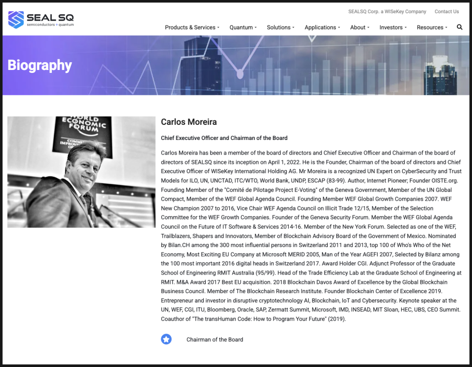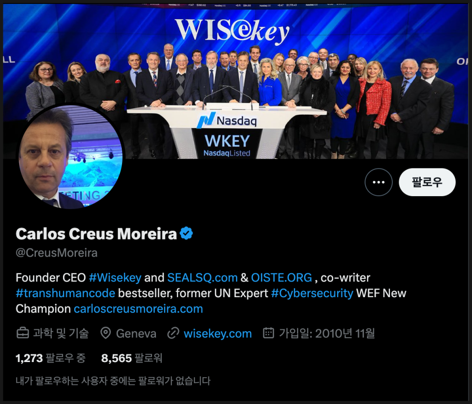 그리고 이 회사의 창립자이자 CEO인 Carlos Creus Moreira 인물도 두고 봐야 합니다. WISeKey International Holding AG라는 기업의 창립자이자 CEO이기도 한데, 업계에서는 꽤 오래전부터 활동해온 인물로, 사이버보안과 암호화폐, 그리고 위성·반도체 분야를 연결하는 독특한 비전을 내세워 왔습니다.