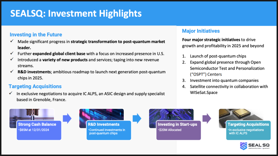이 인수로 SEALSQ는 설계와 생산 과정을 자체적으로 통제할 수 있게 되었고, 제품 출시 속도도 크게 높일 수 있게 됐습니다. 실제로 인수 이후 단 2개월 만에 IC’Alps는 SEALSQ 매출에 약 130만 달러를 기여했습니다. 단순한 기술 확보가 아니라 실질적인 매출 성장 동력으로 작용하고 있는 셈이죠.