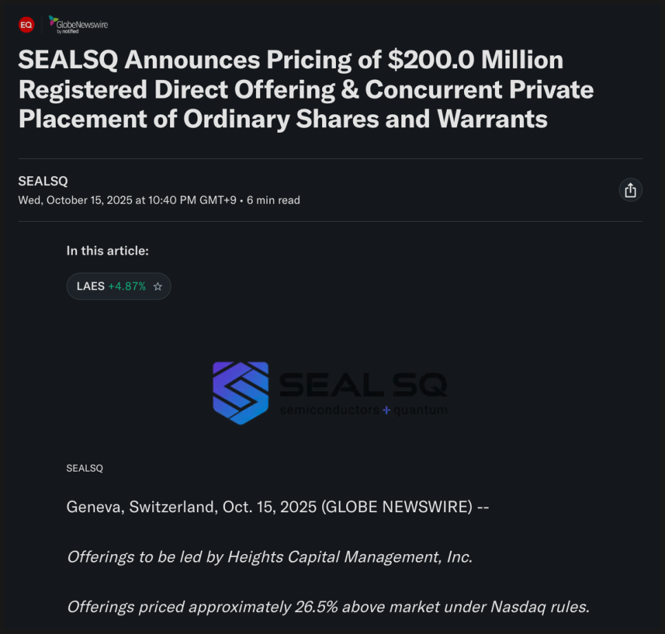 또한 10월 8일 기준으로만 봐도 실스크(SEALSQ)는 약 2억 2천만 달러의 현금을 보유하고 있었기 때문에, 당장 운영에 어려움이 있는 상황은 아니었습니다. 결국 이번 발행은 사업 확장을 위한 전략적 자금 확보로 해석할 수 있겠습니다.