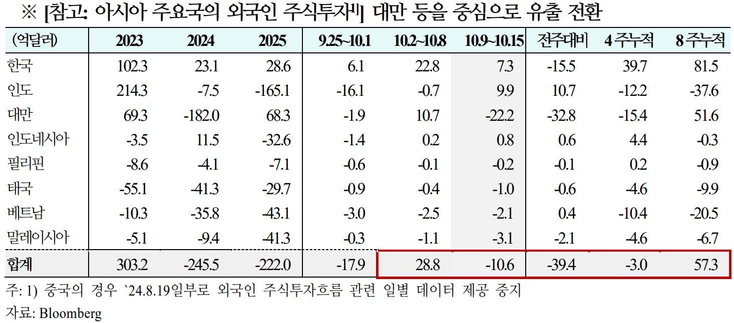 주간 글로벌 자금흐름(25.10.9 (목) ~ 10. 15 (수))