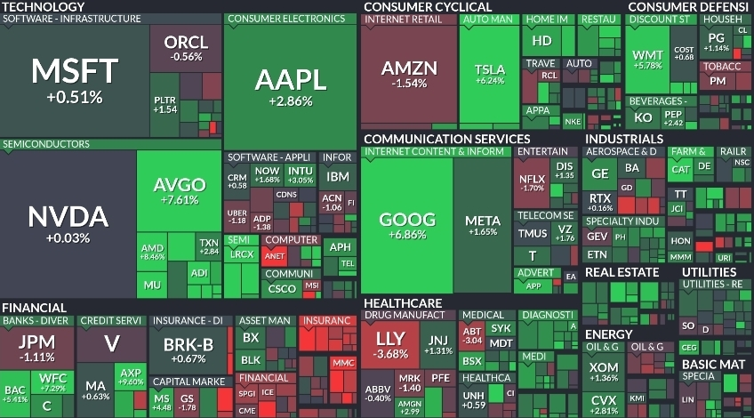 섹터별로는 반도체·통신서비스·소비재가 강세였고 제약 및 유틸리티는 약세였습니다. 에너지 섹터는 유가 안정에 따라 중립적인 흐름을 보였습니다. 이는 ‘인플레 둔화 + 경기 유지’ 시나리오에 대한 시장의 기대가 반영된 결과로 해석됩니다.