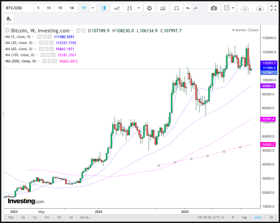 요약하자면, 일간 차트는 단기 약세 흐름이 뚜렷해 단기 반등이 나와도 저항에 부딪힐 가능성이 높습니다. 반면 주간 차트에서는 상승 추세가 아직 유지되고 있어 이 구간이 추세 전환의 핵심 분기점이 될 수 있습니다. 단기적으로는 107,000달러대 지지선 방어 여부가 중요하며, 이 가격대가 지켜진다면 조정 이후 재반등의 발판이 될 수 있습니다. 반대로 이 선이 깨질 경우 중기 추세까지 흔들릴 수 있어 경계가 필요합니다.