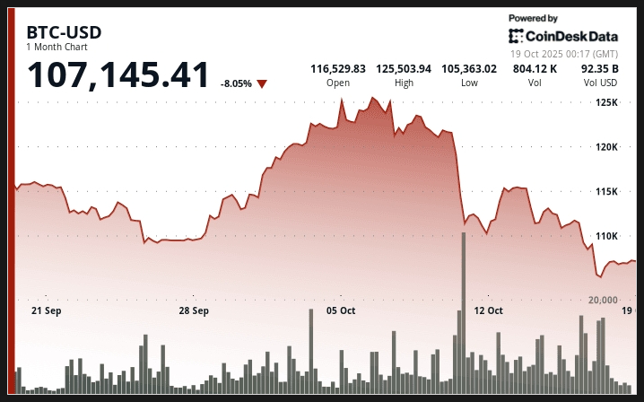 결과는 매우 극적이었습니다. 약 1,900억 달러 규모의 포지션이 청산됐고, 비트코인은 10월 6일 고점 12만 6,300달러에서 10만 7,000달러까지 급락했습니다. 이더리움 역시 4,800달러에서 3,500달러 근처까지 떨어졌습니다.