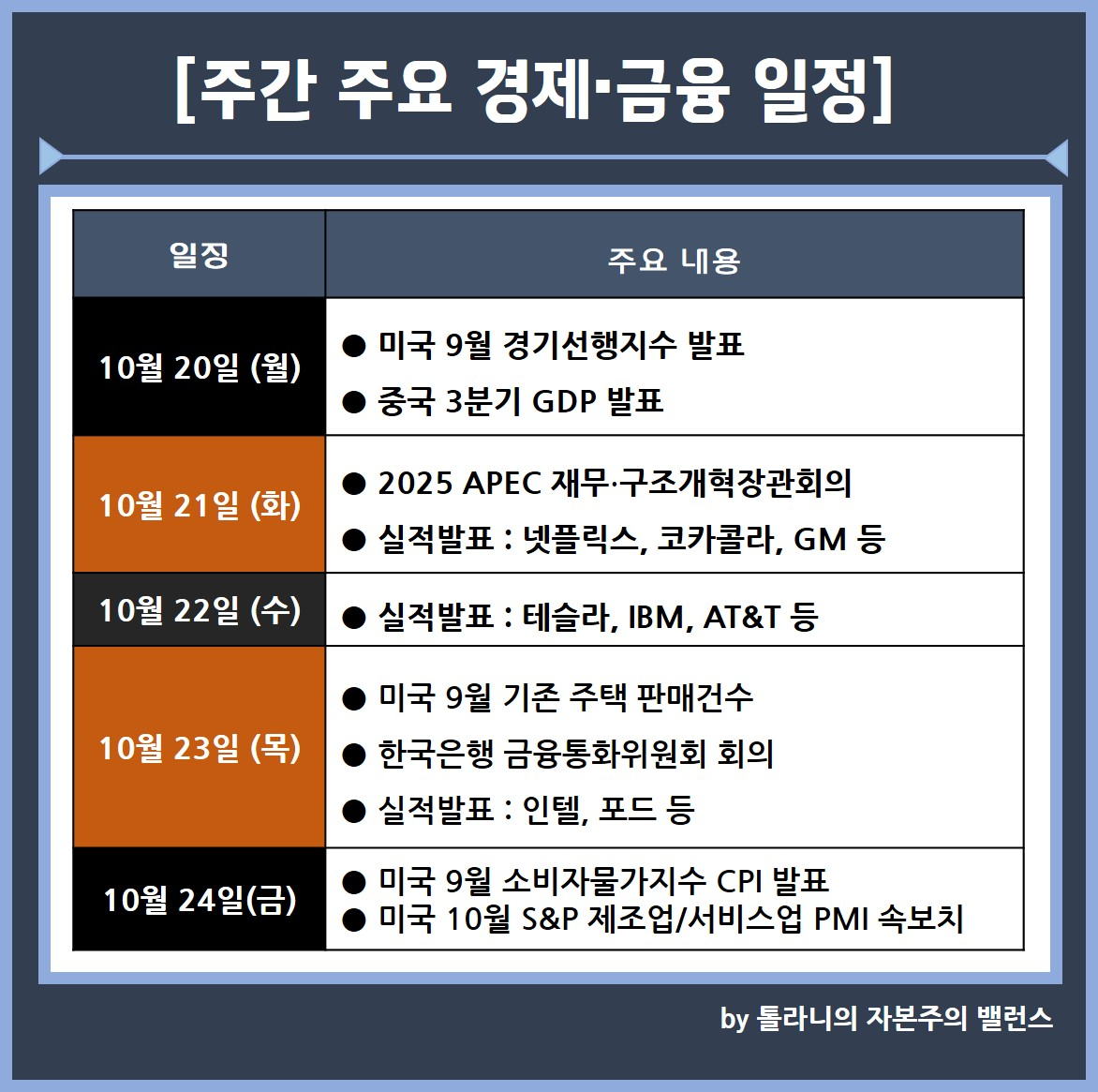 4) 미국 주요기업 3Q 실적 발표. 한은 금통위원회 개최