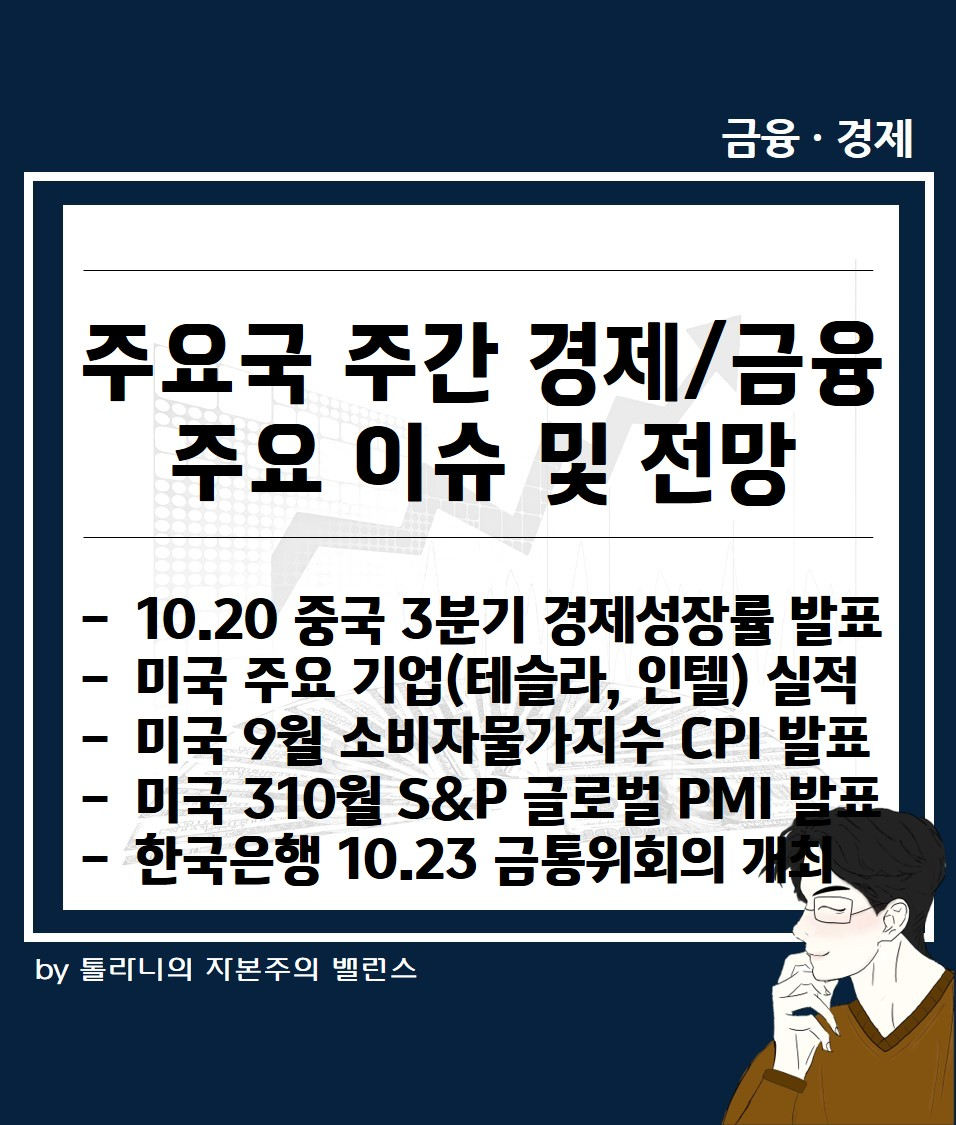 지금까지 '미국 주요기업 테슬라 / 넷플릭스 3Q 실적, 9월 CPI 발표. 중국 3분기 GDP 및 9월 경제지표 등 주요 국가 주간 경제·금융 이슈' 관련하여 알아보았는데요.
