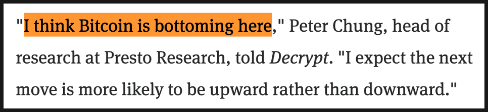 프레스토 리서치의 피터 청 연구원은 “지금이 바닥일 가능성이 높다”며 “다음 움직임은 하락보다는 상승일 것”이라고 전망했습니다.