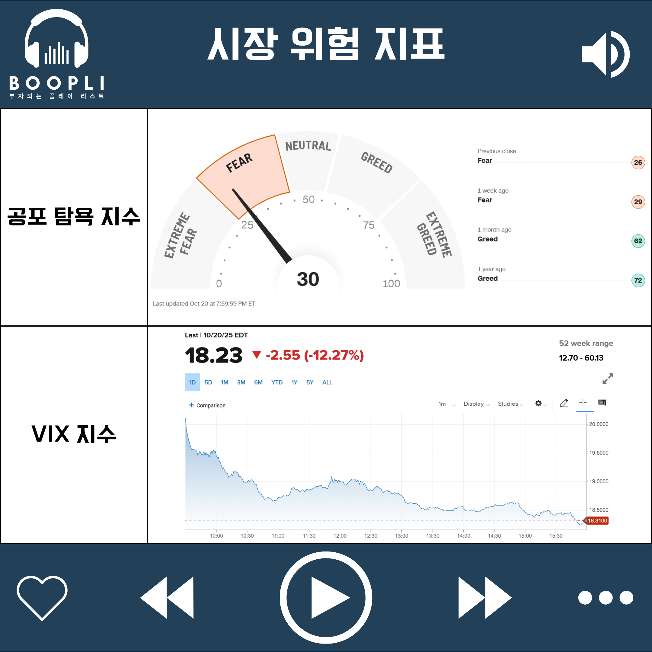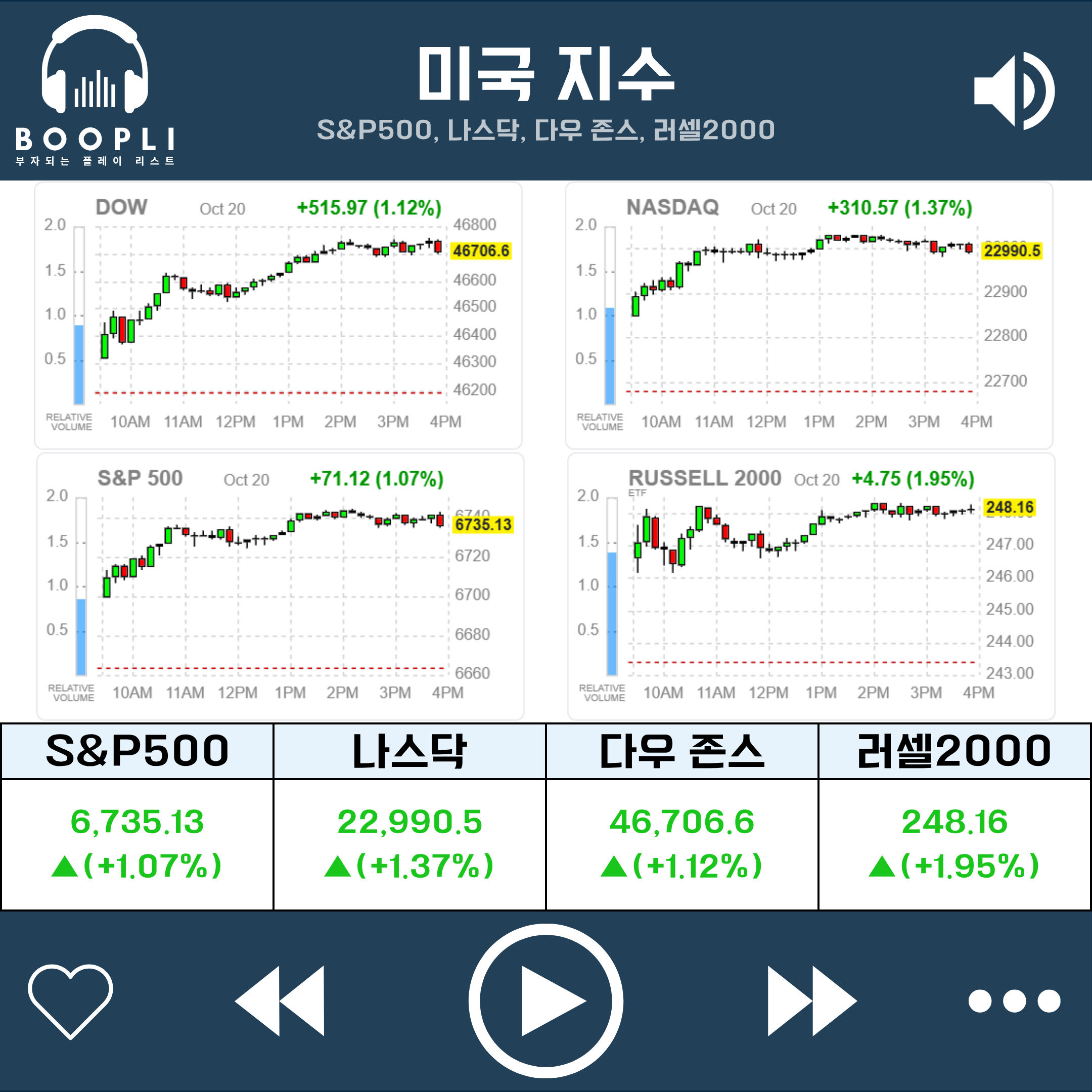 전반적으로, 전일 증시는 셧다운과 미중 무역 협상 등 정치적 리스크가 완화되고 애플이 강세를 보인 가운데, 견조한 3분기 실적 기대감이 '저점 매수' 심리를 자극하며 상승세를 이어감