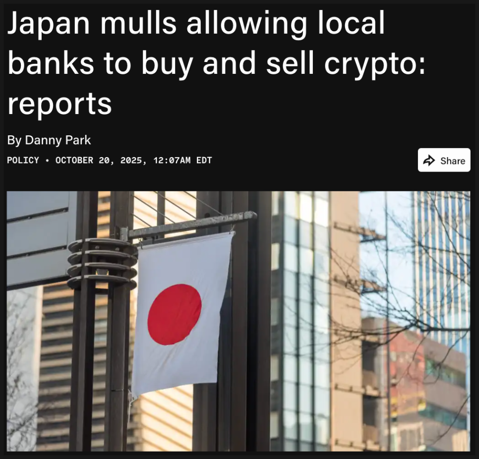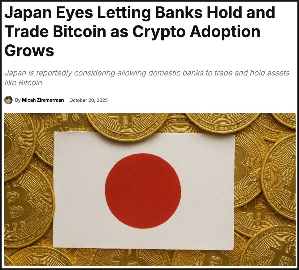 세 번째 중요한 뉴스는 일본에서 나왔습니다. 일본 금융청(FSA·Financial Services Agency)이 국내 은행의 암호화폐 매매 및 보유를 허용하는 방안을 공식적으로 논의하기 시작했습니다.