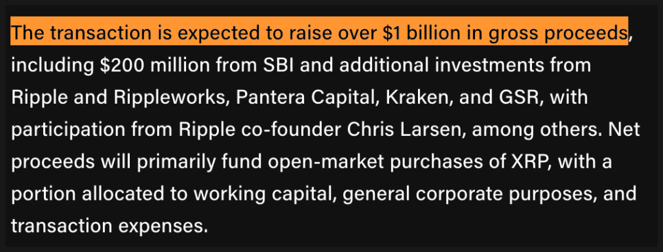 에버노스는 이 거래를 통해 10억 달러 이상의 자금 조달을 목표로 하고 있습니다. 일본 금융 그룹 SBI 홀딩스(SBI Holdings)가 2억 달러를 투자하고, 리플(Ripple), 리플웍스(Rippleworks), 판테라 캐피털(Pantera Capital), 크라켄(Kraken), GSR 등이 참여합니다. 특히 리플 공동창업자 크리스 라센(Chris Larsen)은 5천만 개의 XRP, 약 1억 2,500만 달러 상당을 직접 출자했습니다.