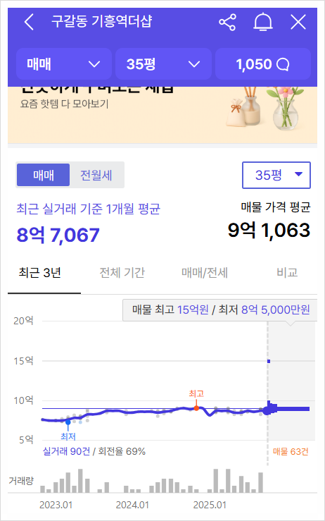 18년도 준공된 구갈역 신축들은 시세가 평당 3천만원 수준이다. 풍선효과로 이번 10.15 대책의 수혜지가 기흥구인 만큼 10억 이상까지 오를 것으로 본다. 조합원들 분양가는 평당 2,500만원으로 가정했는데 과거 기흥역 더샵과 센트럴푸르지오의 일반분양가가 1,400~1,500만원 수준인 것에 비해 높게 계산했다. 총 조합원 분양수익은 5,043억이다.