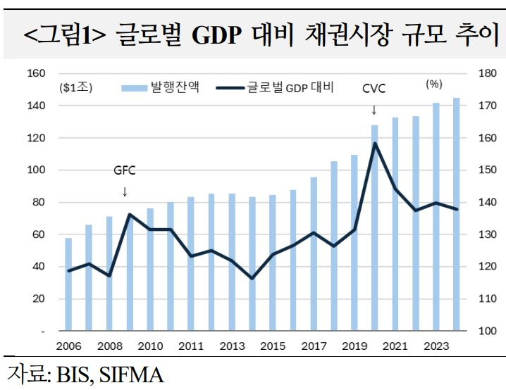 글로벌 채권 발행잔액은 `24년말 $150조로, 글로벌 GDP의 138%(BIS 기준)
