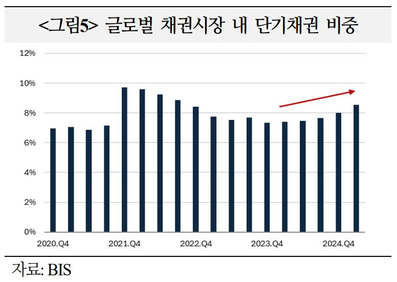 글로벌 국채 발행 증가로 국채금리가 시장 변동성에 취약해진 가운데, 최근 단기국채 조달 비중이 늘어남에 따라 금리인하에 대한 정치적 요구가 커지면서 재정우위(fiscal dominance) 위험이 확대될 수 있음에 유의
