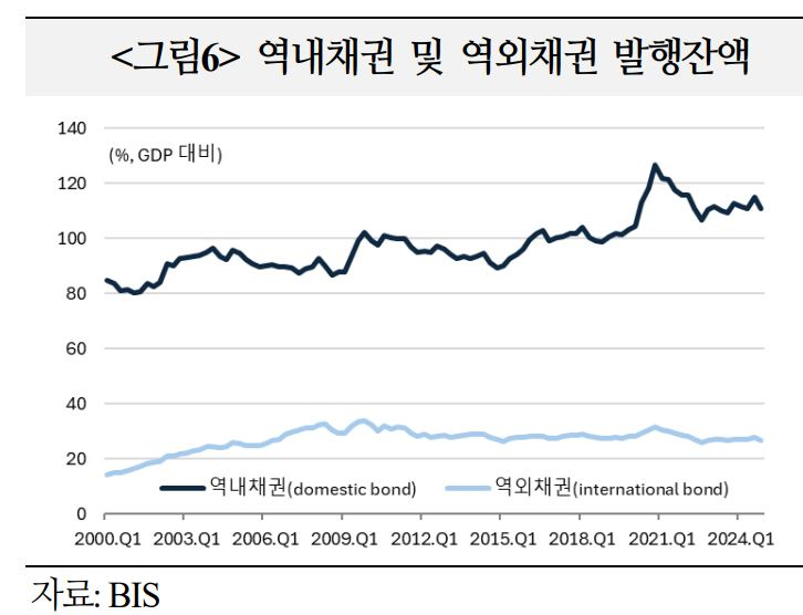 – 선진국 중심으로 자국통화 채권이 활발하게 발행되면서 자국 채권시장(domestic bond market) 규모는 `07년말 글로벌 GDP 대비 90% → `24년말 111%로 확대