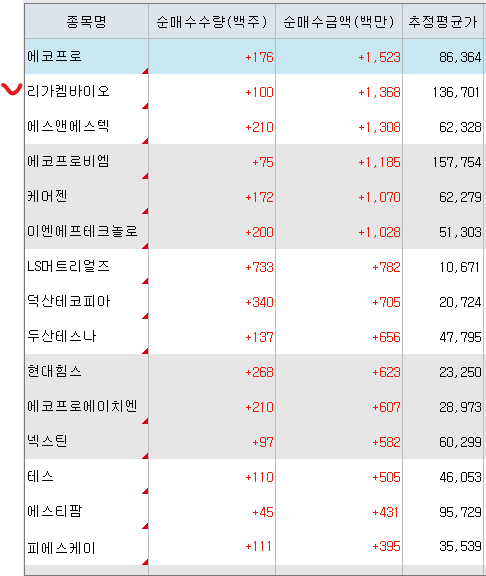 <연기금 순매수 상위 종목>