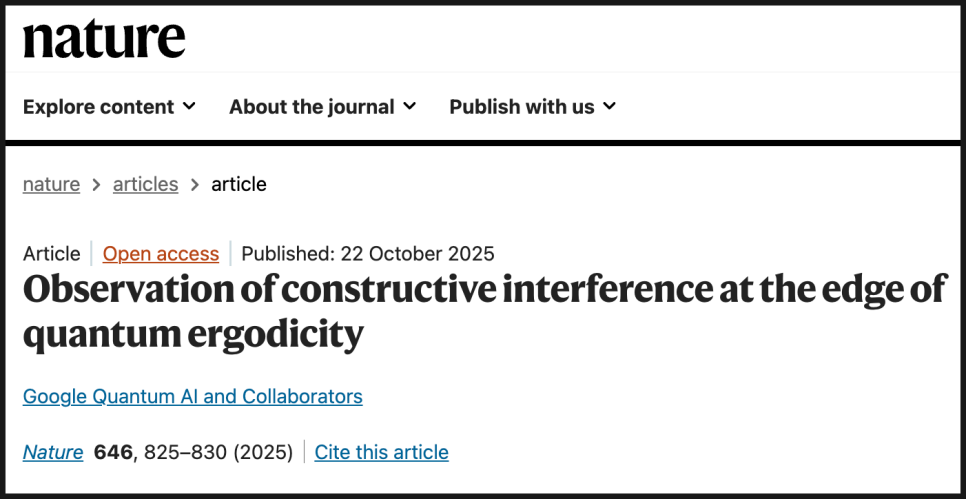 이 알고리즘은 네이처(Nature)에 게재되었고, 전문가들로부터 “명확한 양자 우위(Quantum Advantage)의 입증”이라는 평가를 받았습니다. 다만 이번 성과가 곧바로 실용화로 이어지는 건 아닙니다. 구글 역시 실제 산업 적용까지는 5년 정도의 시간이 필요할 것으로 내다봤습니다.