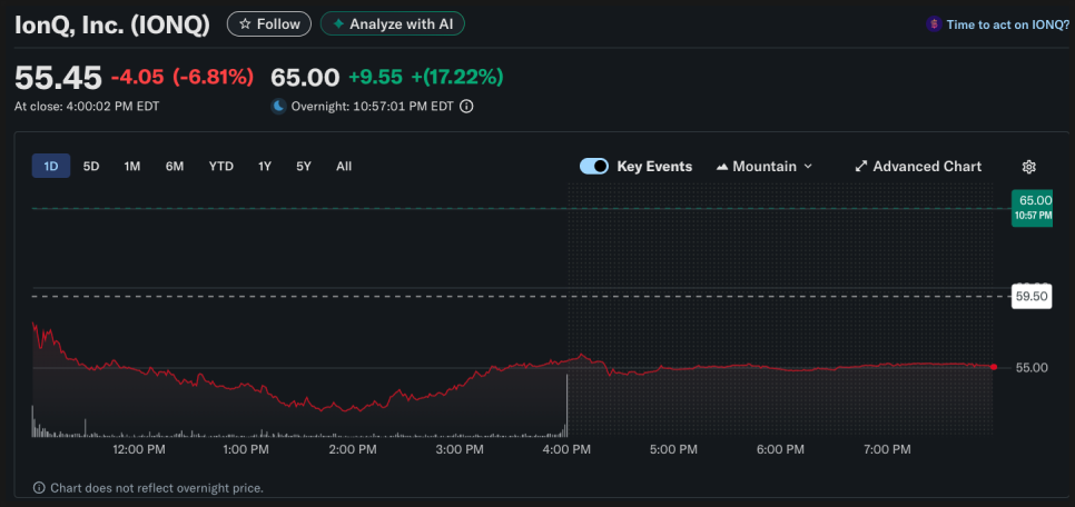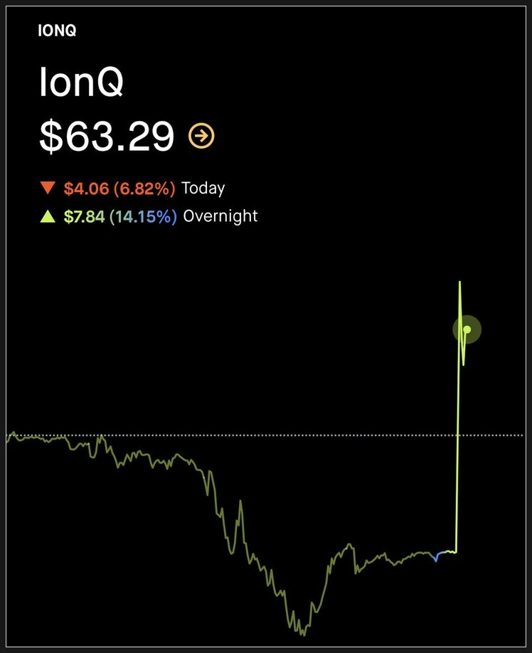 2025년 10월 22일 장 마감 기준 아이온큐(IonQ)는 정규장에서 6.82% 하락 마감했지만, 보도 이후 시간외 거래에서 무려 14.15% 상승하며 하루 만에 급반등했습니다.