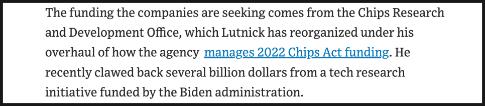 이번 자금은 칩스 연구개발국(Chips Research and Development Office)에서 제공됩니다. 루트닉 장관은 해당 조직을 재편해 2022년 반도체법(Chips Act) 자금 집행 방식을 전면 개편했으며, 바이든 행정부 시절 기술 연구 이니셔티브에 배정됐던 수십억 달러를 회수한 바 있습니다.
