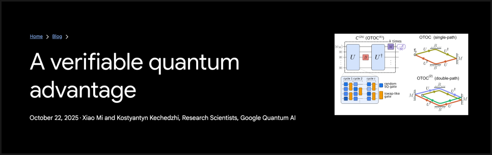 한편 글로벌 기술 경쟁도 본격화되고 있습니다. 10월 22일, 구글(Google)은 자사 양자컴퓨터가 기존 슈퍼컴퓨터의 연산 능력을 능가하는 알고리즘 계산에 성공했다고 발표했습니다. 이번 연구는 분자 구조 계산에 초점을 맞추었으며, 기존 방식보다 13,000배 빠른 연산 속도를 기록했습니다.