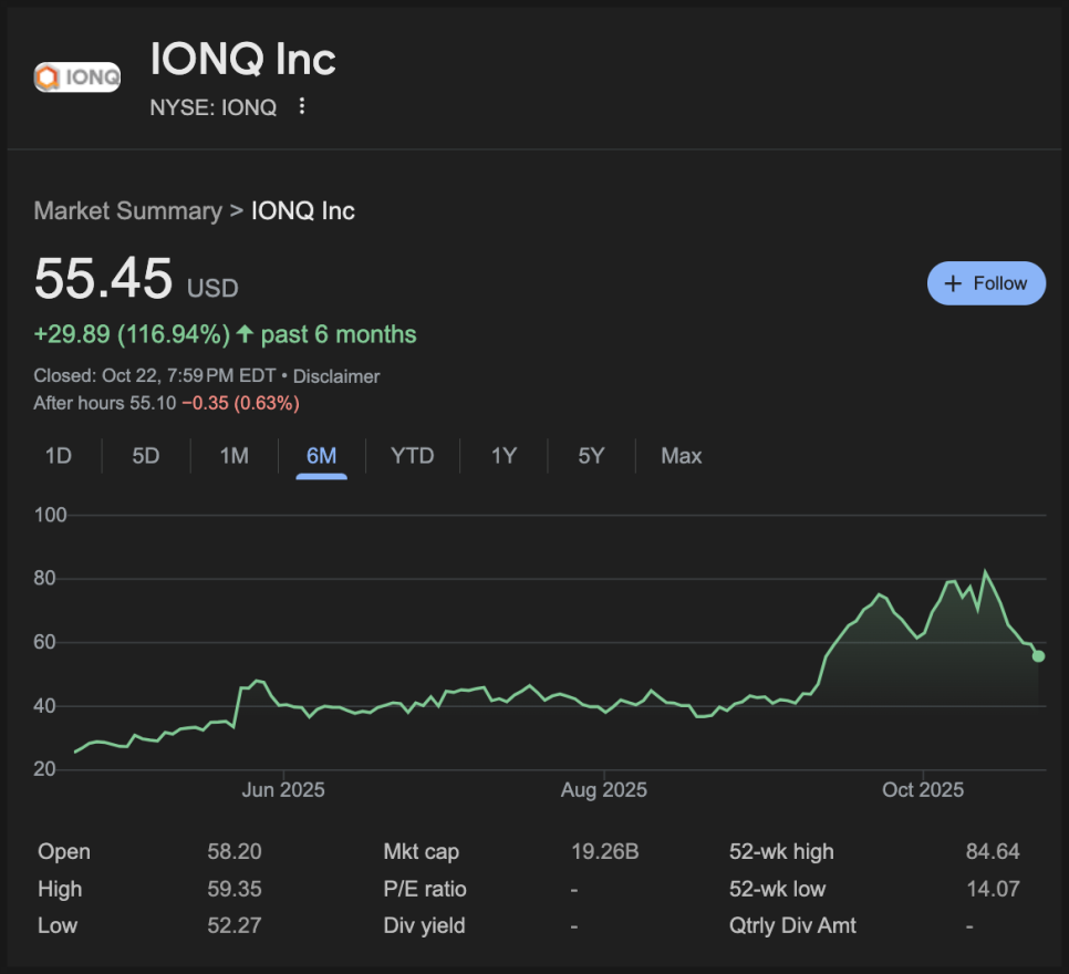 2025년 10월 23일에 다룰 종목은 아이온큐(IONQ)입니다.