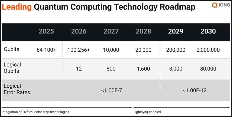 아이온큐는 2026년 256큐빗 시스템 시연을 예고하며, 이를 토대로 수백만 큐빗 규모의 양자컴퓨터로 확장하겠다는 계획을 다시 한 번 재확인했습니다. 주목할 점은 아이온큐의 방식이 레이저 대신 정밀 전자제어를 사용한다는 것입니다. 이 덕분에 반도체 칩 공정을 활용해 생산 단가를 낮추고, 양산 가능성을 높일 수 있습니다.