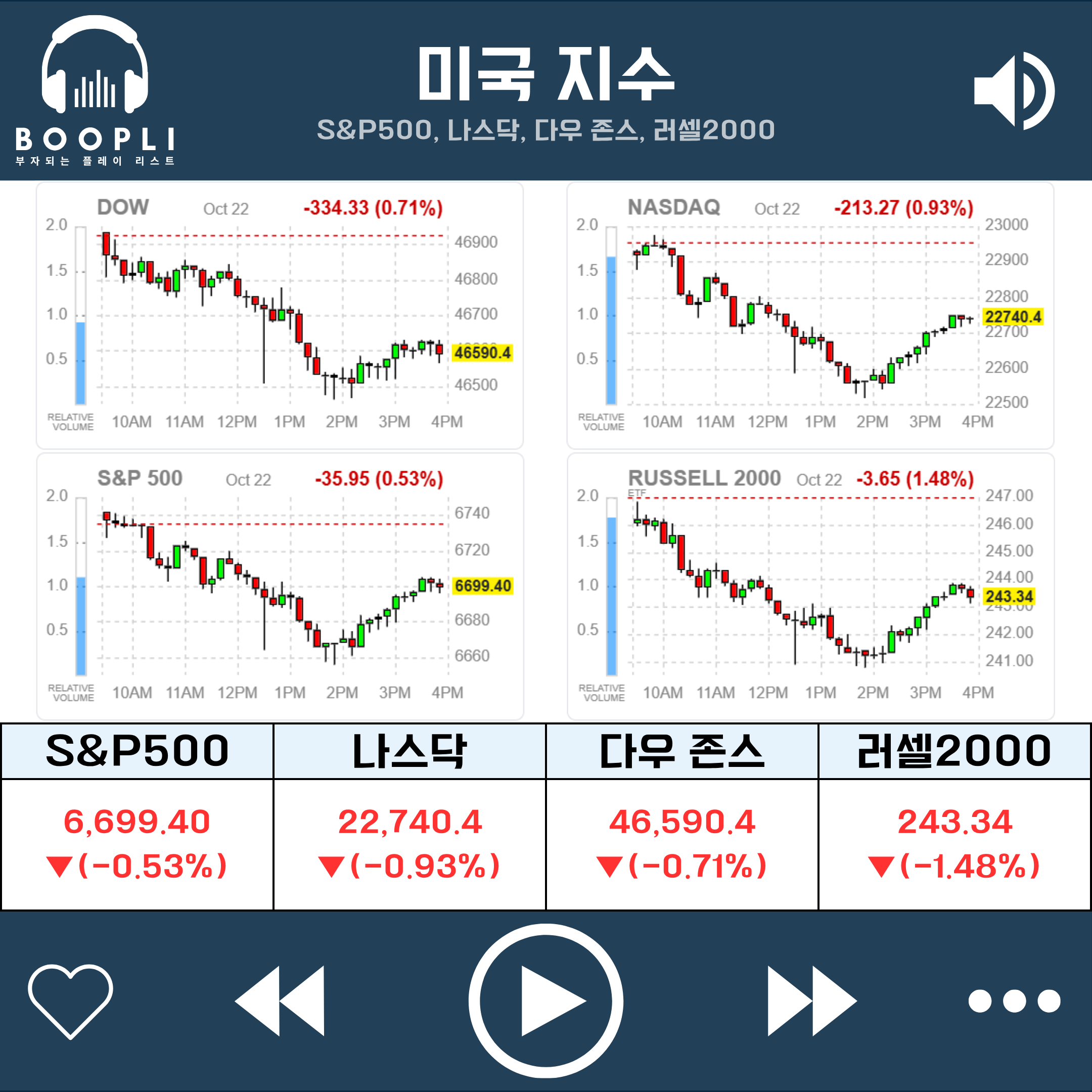장 후반 일부 저가 매수세가 유입되며 낙폭이 다소 축소되었으나 4대 지수 모두 하락 마감
