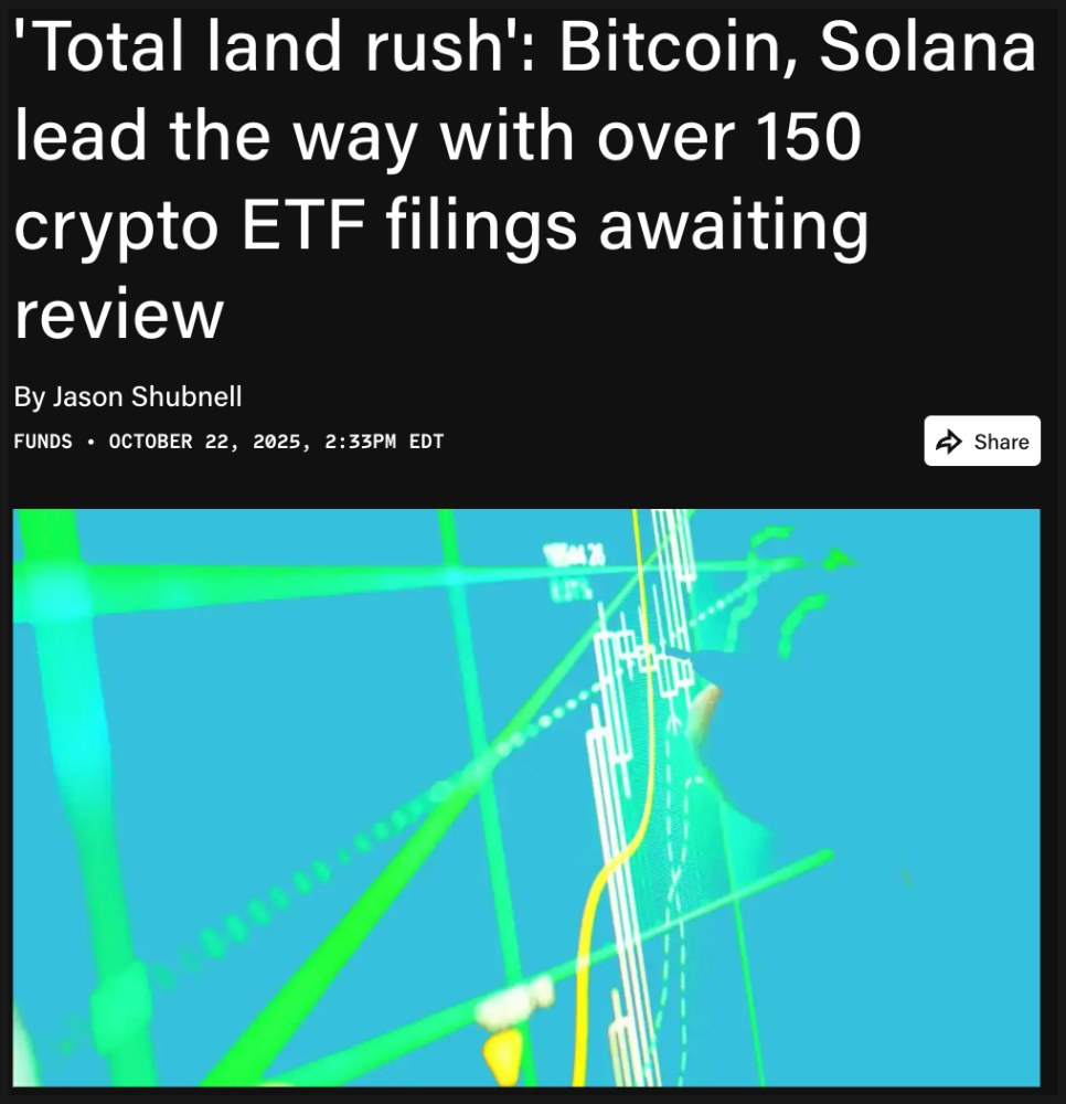 ETF 애널리스트 에릭 발추나스(Eric Balchunas)는 현재 상황을 “토지 쟁탈전(Land Rush)”이라고 표현했습니다. 규제 절차가 재개되는 순간 시장 선점을 노리는 발행사들이 경쟁적으로 신청서를 내고 있다는 뜻입니다.