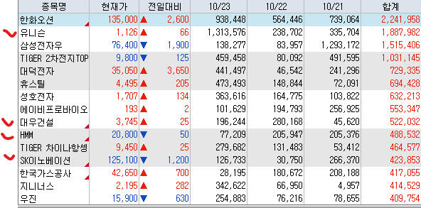매도 : 가온전선 포스코퓨처엠 POSCO홀딩스 LG이노텍 포스코DX 제룡전기 JYPENT 한전KPS LG화학 LIG넥스원 유진테크(+102.79%) KODEX골드선물 코스맥스 알테오젠 에코프로비엠 실리콘투 에브리봇 F&F SOL조선TOP3플러스