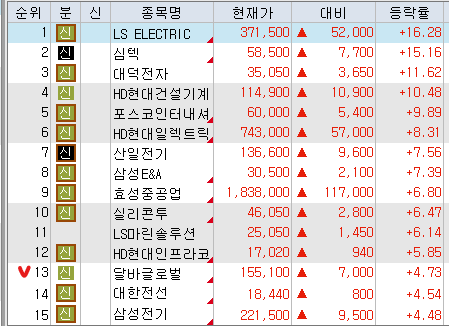 LS ELECTRIC과 HD현대일렉트릭이 호실적을 발표한 데다가, 서해안에너지고속도로 사업 본격화 기대감에 전력기기 업종이 강세 : 동 사업은 전남, 전북 등 서해안지역의 풍부한 해상풍력과 태양광 등 재생에너지 발전 자원을 활용해 생산된 전력을 수도권 및 주요 산업단지로 직접 송전하는 초고압직류송전망을 2030년까지 구축하는 것을 목표(LS Electric +16.28%, HD현대일렉트릭 +8.31%)