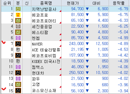 반면, 최근 강세를 보였던 반도체, 자동차, 2차전지주에서 차익실현 물량이 출회되며 하락