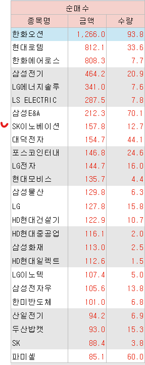 매수 : 맥쿼리인프라 이노와이어리스 제이알글로벌리츠 SK이노베이션 달바글로벌 NAVER 코스모신소재 삼성SDI Tiger차이나전기차 Tiger차이나휴머노이드로봇 티앤알바이오팹 유니슨